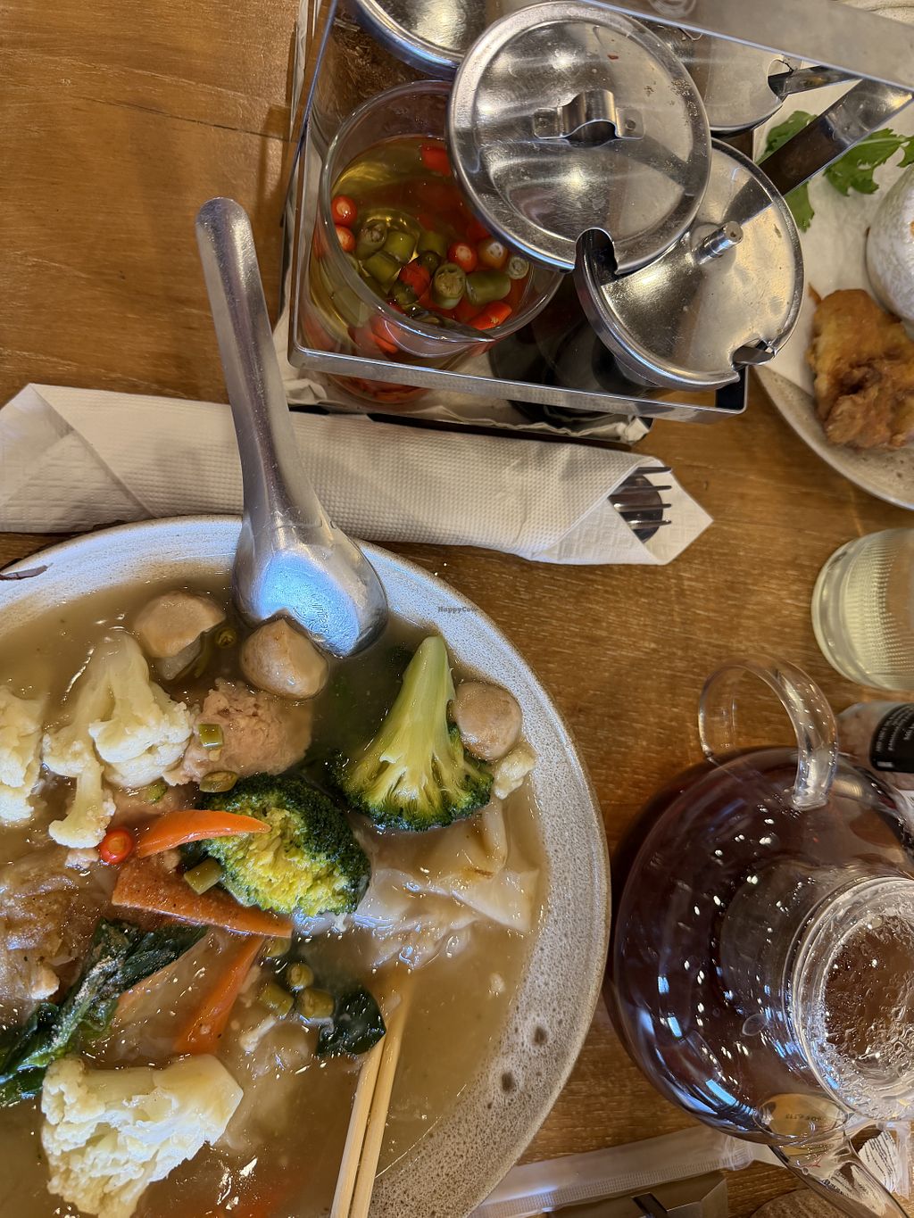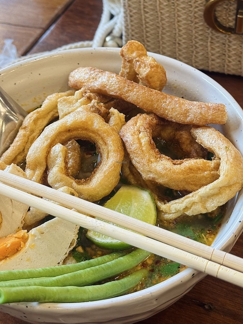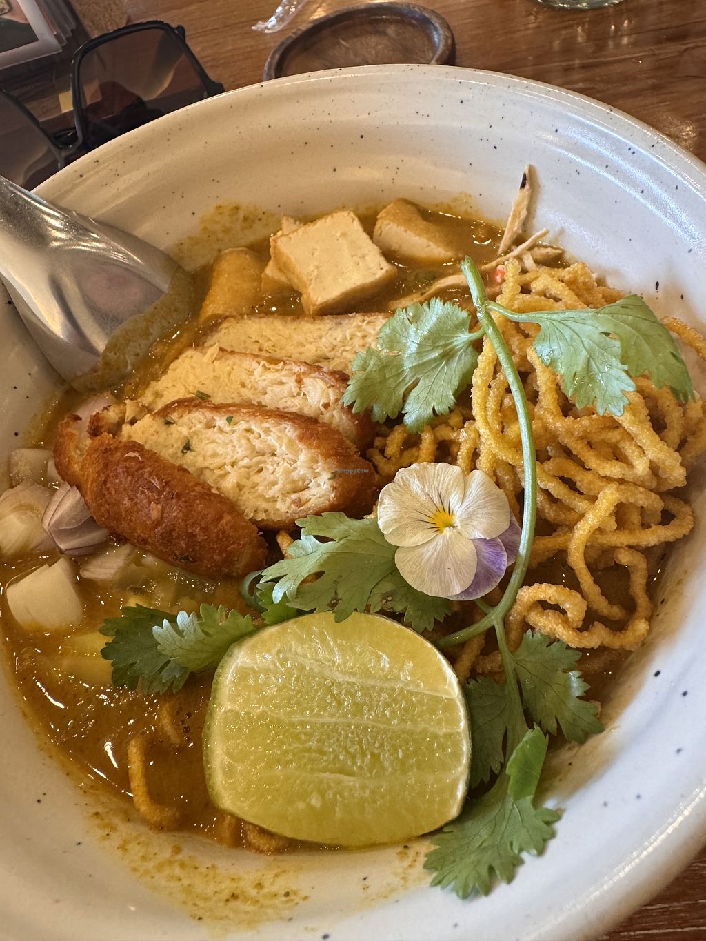 Very delicious and fresh food! I had the Khao Soi which tasted amazing (although a bit spicy, be warned!🌶️🔥) and the vegan chicken ontop was so good!😍 My boyfriend got the ‘Pork Belly’ with rice which blew us away at how much it replicated the meat - so crispy, salty & umami 🤩 Please visit here if you’re in Bangkok and support this restaurant. The staff were very friendly and attentive too 🥰